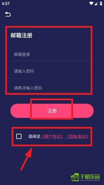 輸入郵箱,密碼,勾選請閱讀《用戶協議》《隱私協議》,點擊注冊即可