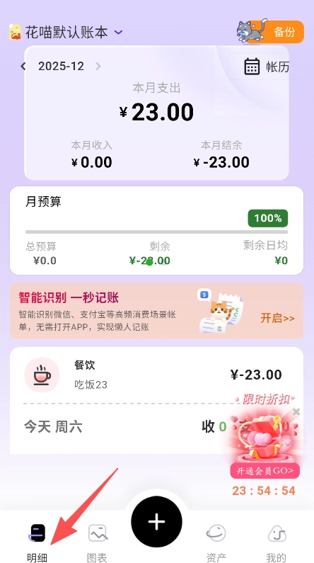 1、打開軟件后進入明細頁面,點擊加號按鈕來添加收支記錄。