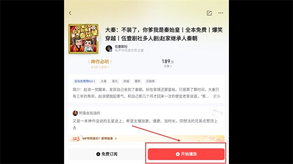 3、在作品詳情頁,點擊【開始播放】按鈕,啟動有聲小說播放。