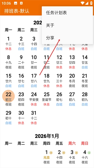 排班功能,用戶可以在我的排班表記錄排班內容;