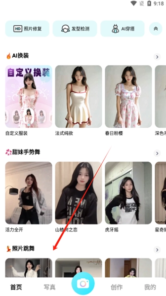 2、往下滑動,找到照片跳舞,點擊進去