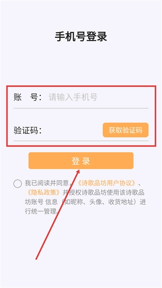 1、在【賬號】輸入框中填寫手機號,點擊【獲取驗證碼】按鈕來獲取驗證信息,隨后點擊【登錄】按鈕完成賬號登錄操作,即可使用該平臺的相關功能。
