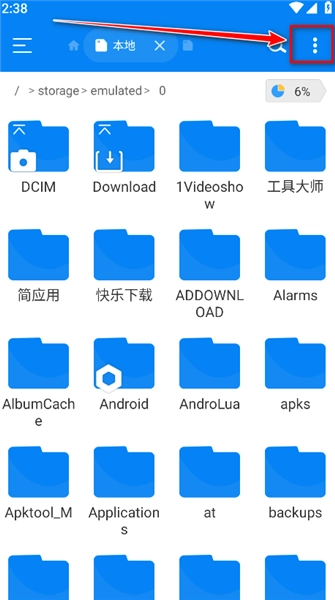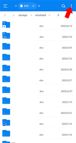 2、我們點擊后來到下方界面,可以看到我們手機中所有的文件夾(這里對文件夾名稱進行了涂抹),如果需要對其進行存儲空間分析可以點擊右上角的三個豎排點號按鈕