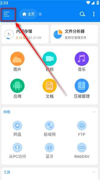 1.打開RS文件管理器,點擊左上角的菜單。