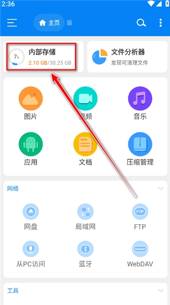 4.返回到主頁點擊內部存儲。