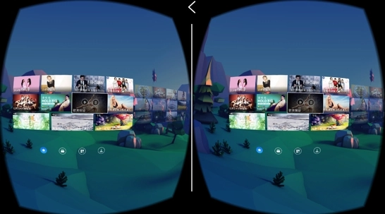 1、安裝完成后點擊屏幕右下角的小眼鏡按鈕,即進入“眼鏡選擇”步驟,軟件兼容市面上所有主流VR眼鏡種類,選擇一款你所使用的VR眼鏡進行保存設置,然后將手機放入VR眼鏡內即可。
