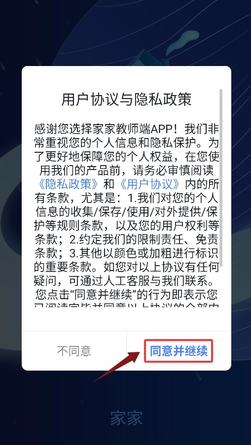 1、首次打開應用時,需點擊“同意并繼續”,確認該操作后才能進入主界面。
