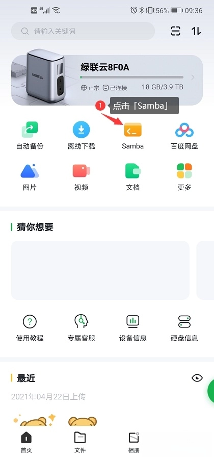1、打開綠聯(lián)云,在首頁(yè)界面,點(diǎn)擊【Samba】選項(xiàng),