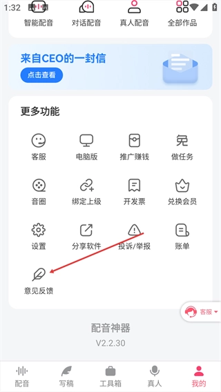 2、在“更多功能”模塊中,找到【意見反饋】選項并點擊。