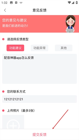 3、填寫意見內容、聯系方式,還可按需上傳相關照片。