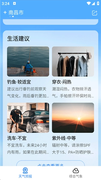 4、向下滑動(dòng),即刻天氣還會(huì)為您呈現(xiàn)諸多對生活、出行及工作有實(shí)用價(jià)值的各類生活建議。
