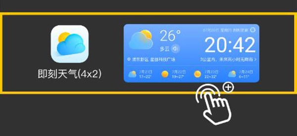 4、選擇即刻天氣預(yù)報(bào)的小插件,長按或拖動(dòng)到桌面上即可。