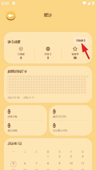 2、在統計界面中,是可以查看自己的學習進度,點擊開始學習。
