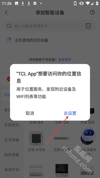 3、在位置信息權限申請中點擊【去設置】完成授權。