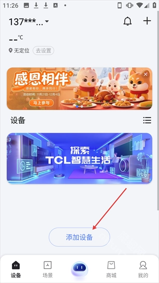 2、點擊【添加設備】進入添加智能設備頁面。