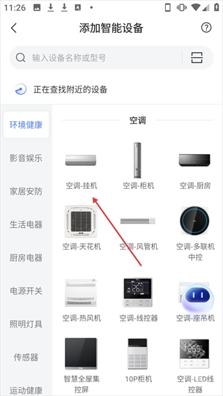4、在添加智能設備頁面選擇【空調-掛機】進入重置空調步驟。