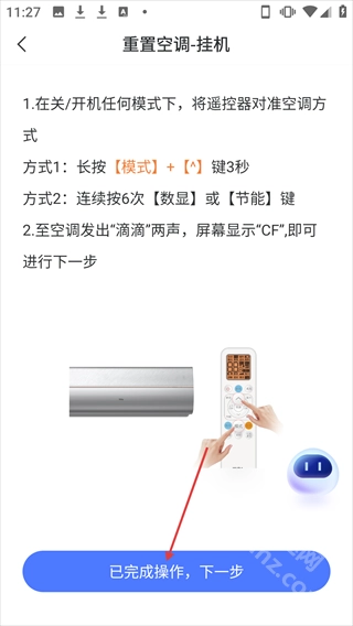 5、按照重置空調-掛機的操作說明完成后,點擊【下一步】繼續添加設備。