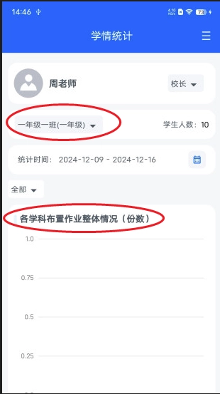 4、之后就能看到學情統(tǒng)計,可以查看年級和各學科作業(yè)的布置情況。