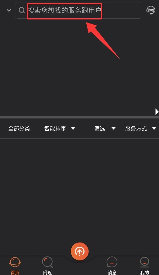 2、首頁提供搜索功能,可輸入關(guān)鍵詞查找服務(wù)或用戶。
