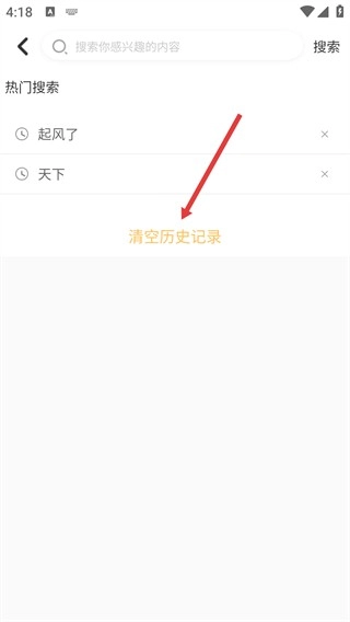 3、在搜索頁(yè)面中,點(diǎn)擊【清空歷史記錄】選項(xiàng),執(zhí)行搜索歷史的清除操作。