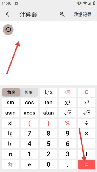 3、進入計算器界面,輸入計算內容后點【=】得出結果。