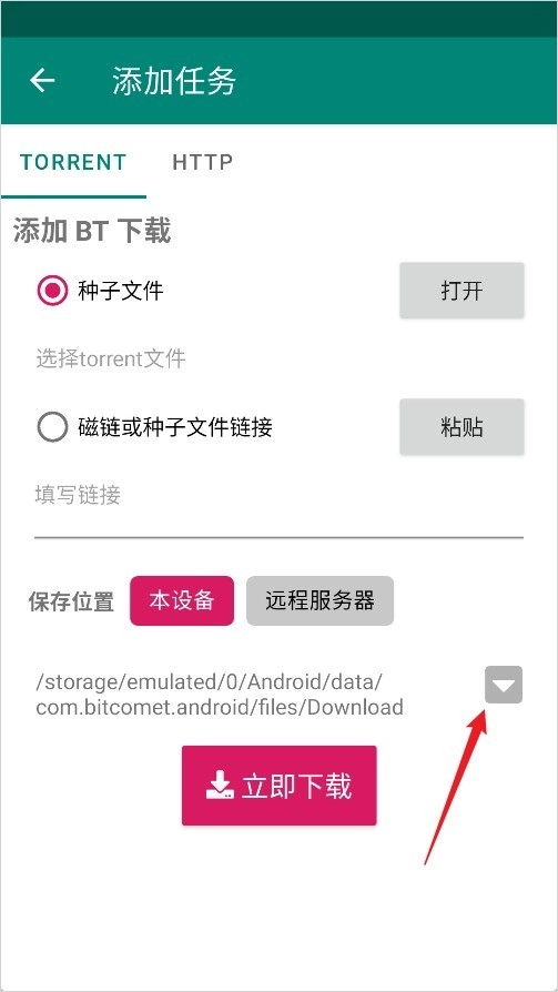 2、進入添加任務頁面后,點擊保存位置右側的“倒三角”圖標。