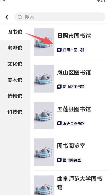 2、于右側(cè)列表中選擇具體目標(biāo),如“日照市圖書(shū)館”點(diǎn)擊進(jìn)入。