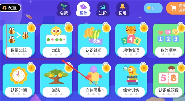 2、經過科學規劃的階梯式課程體系,能夠覆蓋3到8歲兒童的不同成長階段,課程難度從基礎數數開始,逐步進階到百以內的加減法學習。