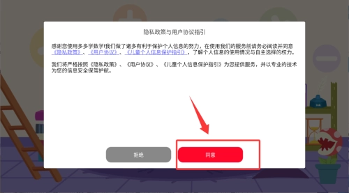 1、在多多學數學中點擊"同意"隱私政策,進入啟蒙課程主界面。