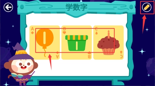 3、跟隨引導識別數字圖案,使用工具完成練習。