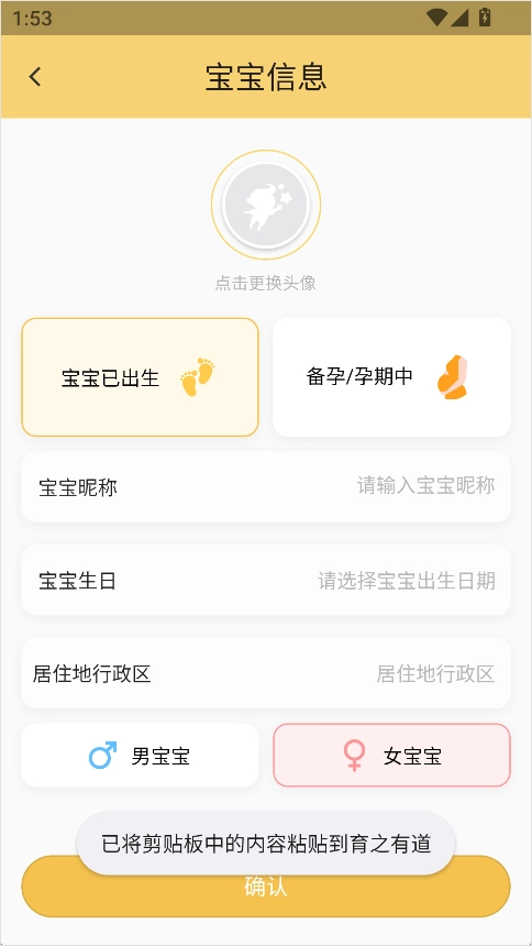 4、按提示填寫新寶寶的基本信息并點(diǎn)擊保存,即可成功添加。