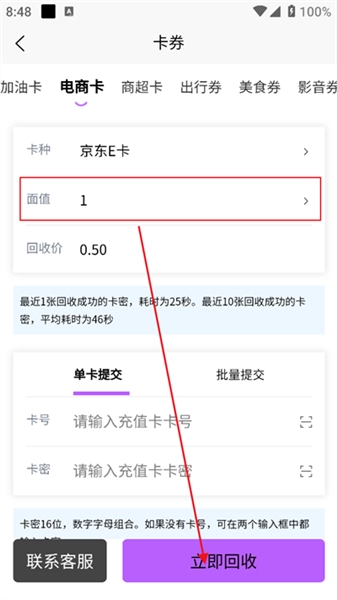 3、輸入面值卡密,一分鐘完成