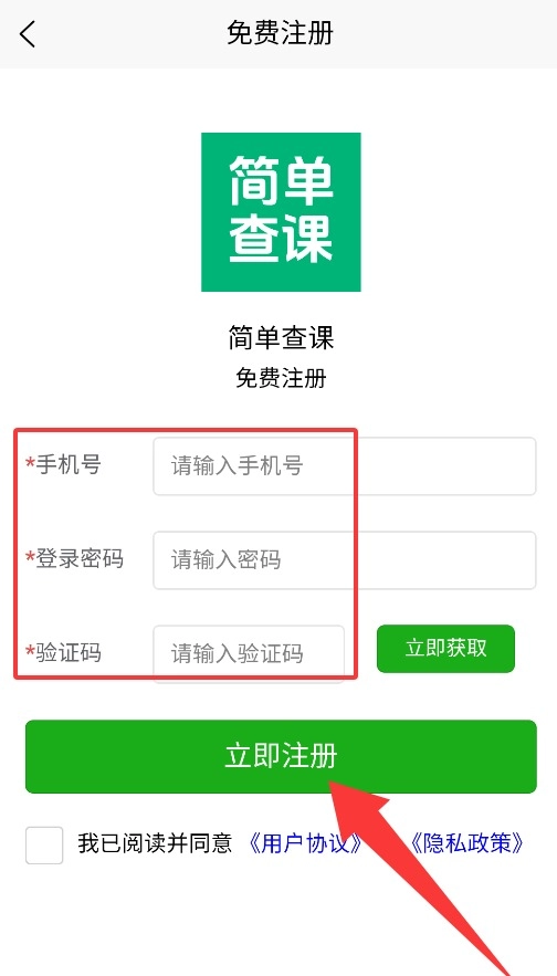 3、進行注冊操作時,要填寫手機號、登錄密碼以及驗證碼,之后點擊“立即注冊”按鈕,即可完成賬號的創建。