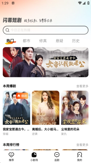 3、小劇場專區(qū),來瞧瞧當(dāng)下熱門的短劇視頻資源都有哪些吧。