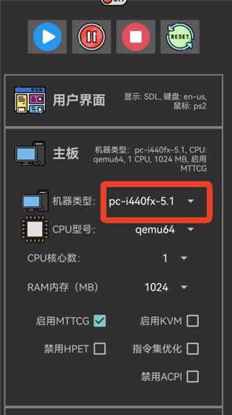 4、點開主機這一欄,再點擊機器類型這個倒三角,選擇【pc-i440fx-5.1】。