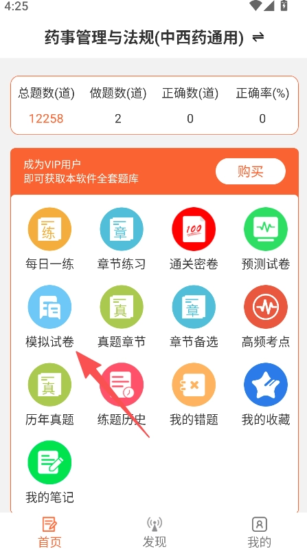 1、打開軟件進入首頁,選擇模擬試卷模塊。