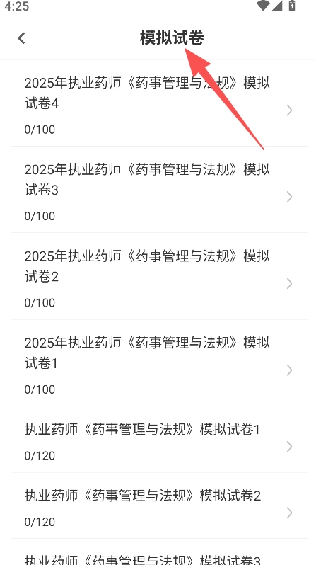 2、在模擬試卷列表中,挑選對應科目試卷進入答題。