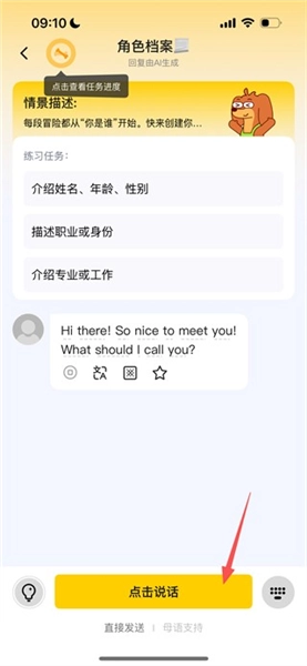 5.在練習頁面,點擊點擊說話按鈕,可開始口語對話練習