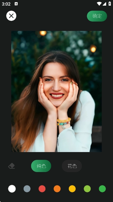 3、選擇要編輯的圖片后,可進行“純色”“花色”等背景或邊框設置,調整圖片風格。