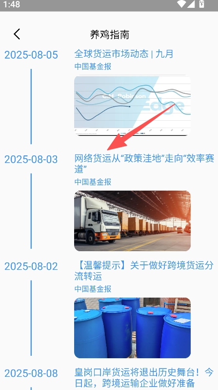 3、展示養(yǎng)雞技巧、貨運(yùn)資訊內(nèi)容,查看養(yǎng)雞方法與貨運(yùn)相關(guān)的資訊信息。