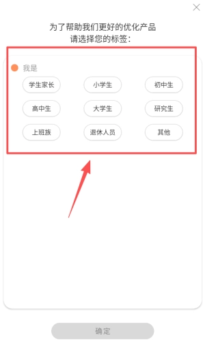 2、在第一個標(biāo)簽頁選擇你的身份 比如學(xué)生或上班族 只需要點(diǎn)擊對應(yīng)選項(xiàng)即可 不需要填寫其他內(nèi)容 完成后點(diǎn)擊確定按鈕。