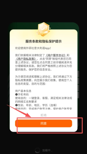 1、首次打開應(yīng)用時,會顯示服務(wù)條款和隱私提示,請仔細(xì)閱讀后點(diǎn)擊同意以繼續(xù)使用;若不同意,用戶將無法正常進(jìn)入,之后會出現(xiàn)標(biāo)簽選擇頁面。