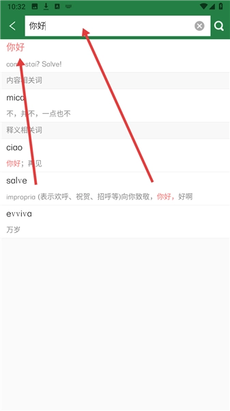 4、接著就能進(jìn)入詞典主界面 在搜索框輸入要查詢的單詞 即可查看詳細(xì)的意大利語釋義和例句 開始你的學(xué)習(xí)吧。