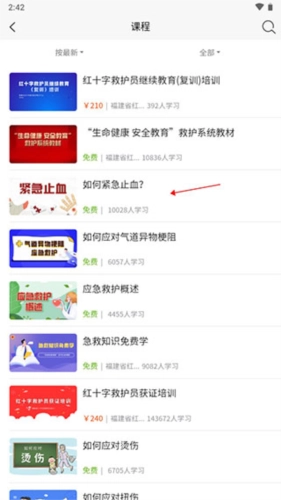 4、還有免費的,拿緊急止血來說,我們在界面找到它,點擊進入。