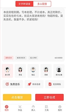 4、點(diǎn)擊制作,能夠在平臺里隨意的設(shè)置音量、語速和音調(diào)