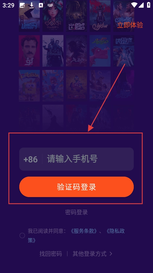 4、到了登錄界面,選【驗證碼登錄】就很省心喲,輸完手機號獲取驗證碼,填好就能完成登錄啦。