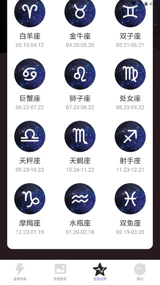 2、【充電壁紙】:提供多款精美星空主題壁紙,支持動態切換,讓充電界面更具個性。