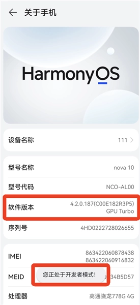部分手機下方會顯示【您正處于開發者模式】,手機型號不同顯示的不一定是一樣的。