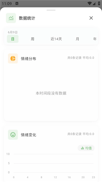3、在首頁點擊“心情日歷”或“情緒統計”板塊,查看月度心情分布、近2周趨勢圖,分析情緒波動規律。