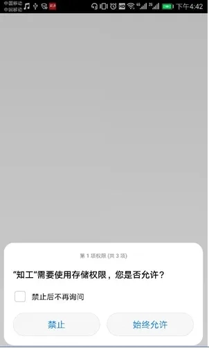 1、首次登錄,點(diǎn)擊“ 知工 ”,打開提示頁面,如下圖所示: